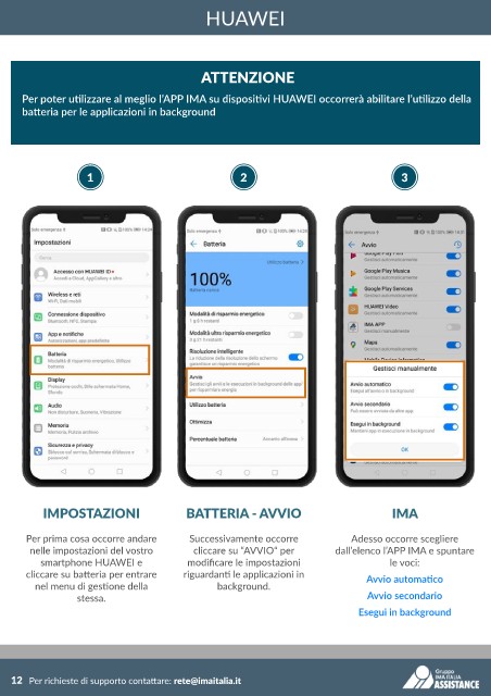 nelle impostazioni del vostro cliccare su “AVVIO“ per dall’elenco l’APP IMA e spuntare