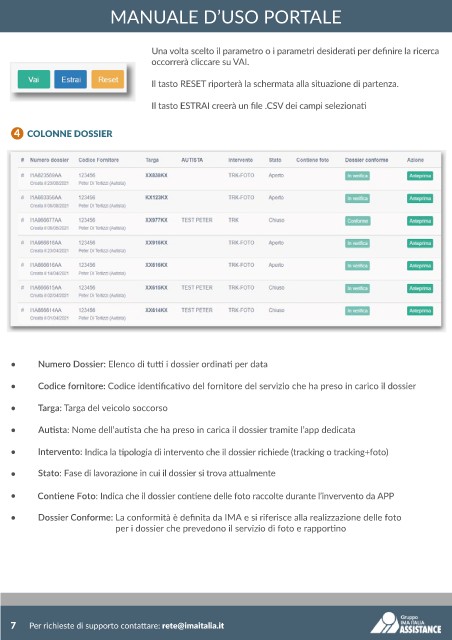 • Autista: Nome dell’autista che ha preso in carica il dossier tramite l’app dedicata